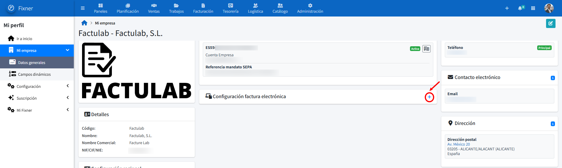 Una vez activados los parámetros necesarios, debes configurar los datos de tu empresa para poder empezar a generar facturas electrónicas: