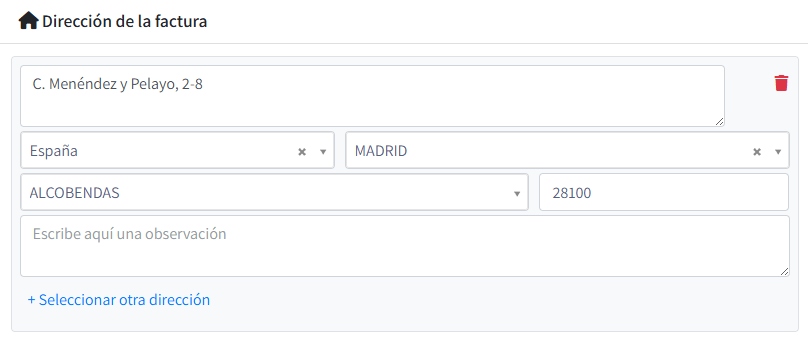 Aquí debes añadir la dirección física de la factura que estás creando.