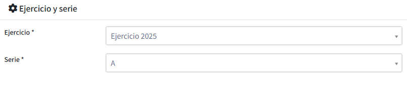 Selecciona en el menú despegable el ejercicio y la serie a los que corresponde la factura que estás creando.