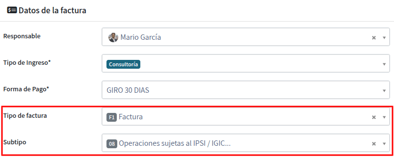 Tipo de factura: Define si se trata de una factura normal, simplificada, rectificativa, etc.
