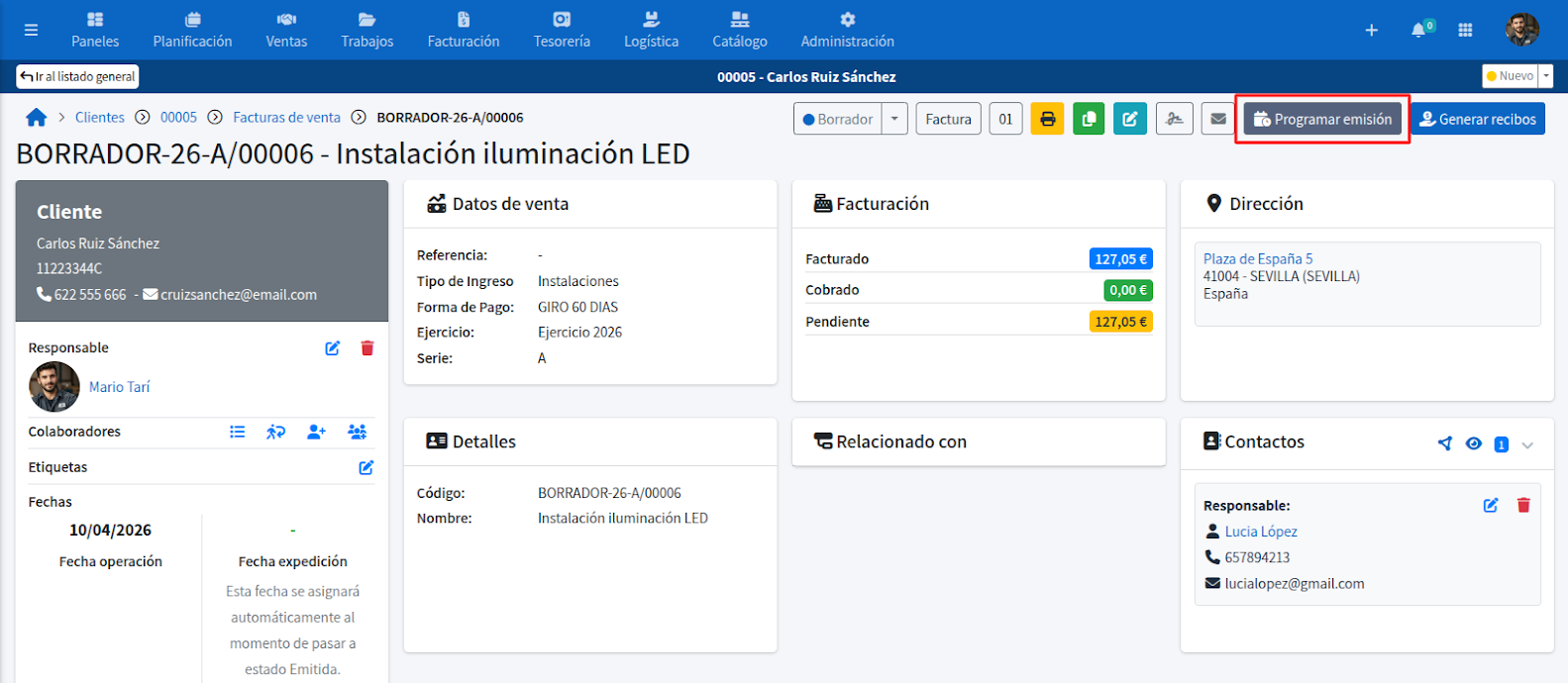 - Entra de nuevo en la factura programada.