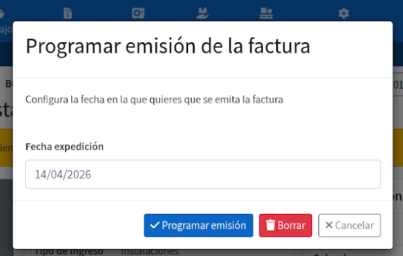 Programar la emisión de tus facturas te permite automatizar el proceso de facturación, asegurando que tus documentos se emitan en la fecha exacta que decidas sin necesidad de intervención manual en ese momento.